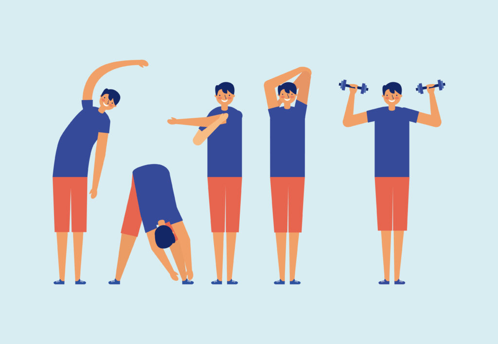 active breaks men doing exercise vector illustration